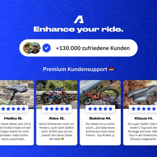 Alpensattel gibt es mittlerweile seit 2021 und das aus gutem Grund! Kundenzufriedenheit ist für uns die höchste Priorität und weil wir von unseren Produkten überzeugt sind, kannst du alle unsere Produkte 30 Tage testen und falls du nicht zufrieden bist, erhältst du deine Zahlung zurück.